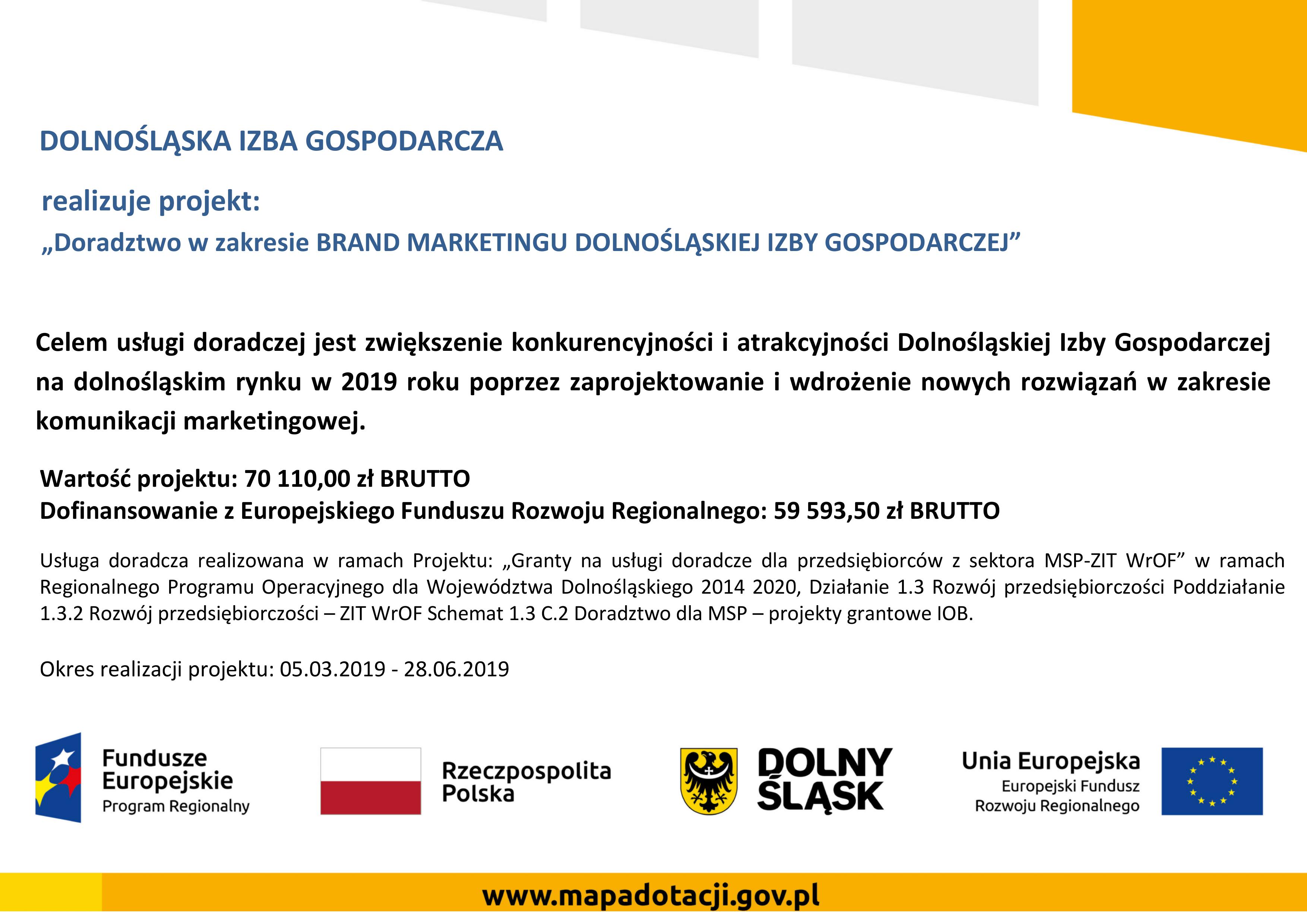 Celem usługi doradczej jest zwiększenie konkurencyjności i atrakcyjności Dolnośląskiej Izby Gospodarczej na dolnośląskim rynku w 2019 roku poprzez zaprojektowanie i wdrożenie nowych rozwiązań w zakresie komunikacji marketingowej.